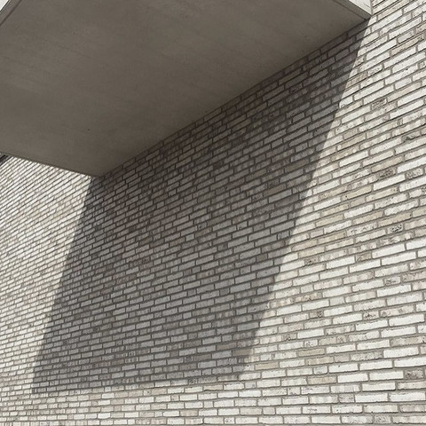 Molded facing brick with a cool, light gray color and slightly split edges.