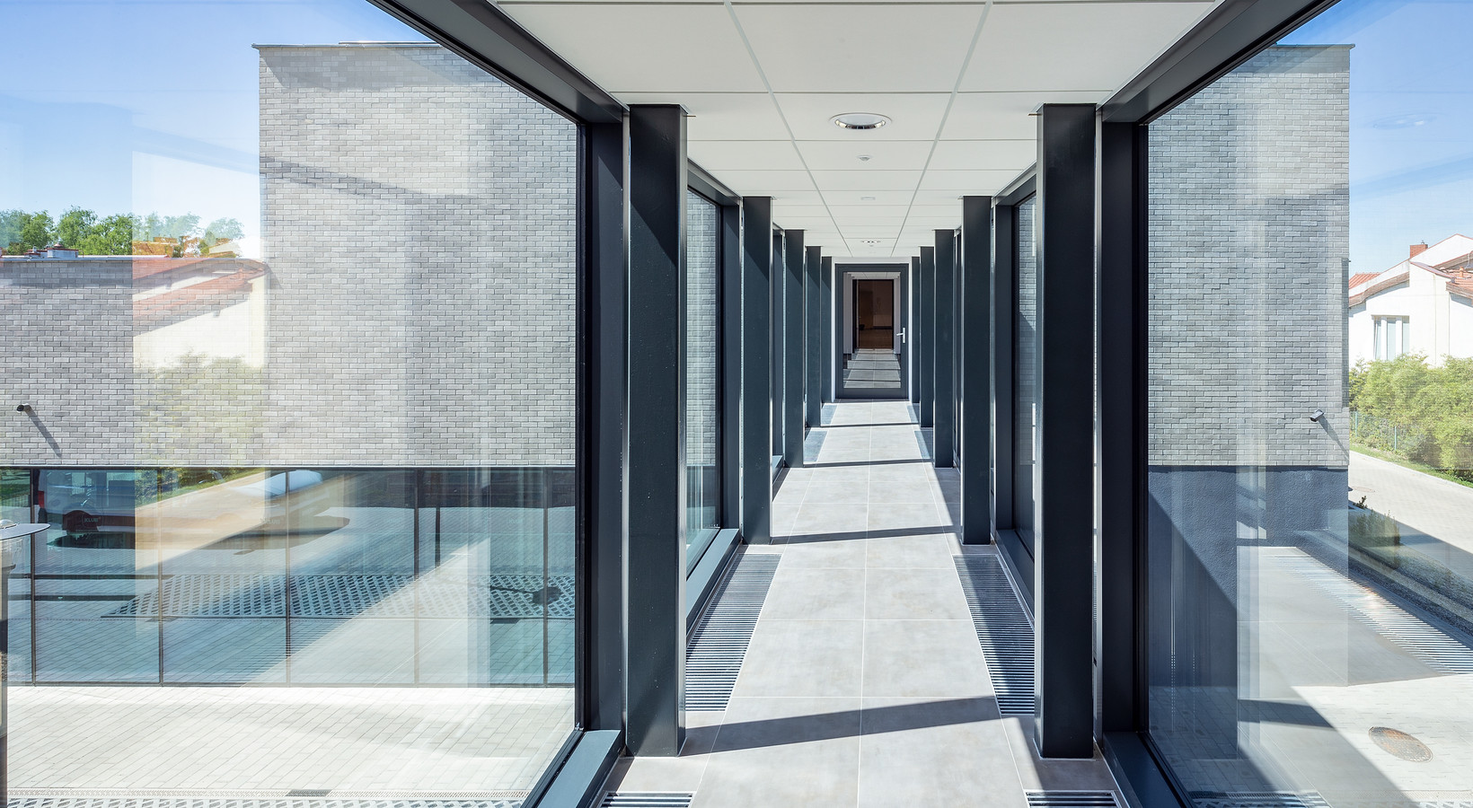 Looking closely at the library building, we can see that every detail has been carefully thought out and refined. To maintain the appearance of the façade for many years and ensure color durability, the designer decided to cover the façade with a gray-white, shaded AARHUS clinker plate from Röben, which has a unique, rough and uneven texture of the face. The clinker provided the building with a touch of the Scandinavian style, and the shading allowed to achieve the effect of the play of colors. The materials used are in line with the ecological construction trend. The designer focused on ceramic materials both at the production and operation stage, since they are safe for the environment.