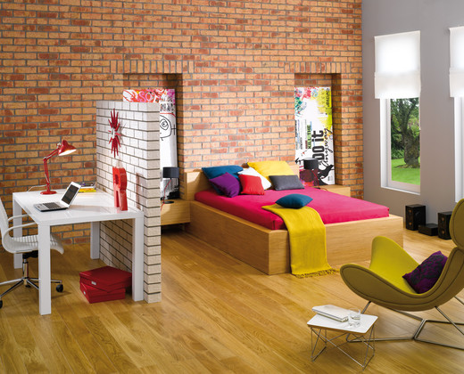 The use of building materials, guaranteeing not only an interesting and attractive appearance of the building, but also ensuring excellent thermal insulation and resistance to various types of damage – such assumptions were adopted by investors. Based on these guidelines, the pearl white smooth clinker brick Oslo by Röben was selected for the façade from the collection of imported products. Its unique color definitely deviates from the most common associations with the typical color of clinker bricks. The bright color of the clinker underlines the contemporary character of the design, and the dark color of the grout – the pattern of bricks in the wall. The brick façade is a surface of a three-layer wall construction, which constitutes a visible protective surface, providing the desired aesthetic effect. It consists of hollow blocks, mineral wool and a clinker façade. The use of three-layer wall technology is another consequence of the assumptions made by investors to make the house warm and energy-efficient. It can also be seen in the selection of products for the roof, which was covered with anthracite ceramic tiles.
