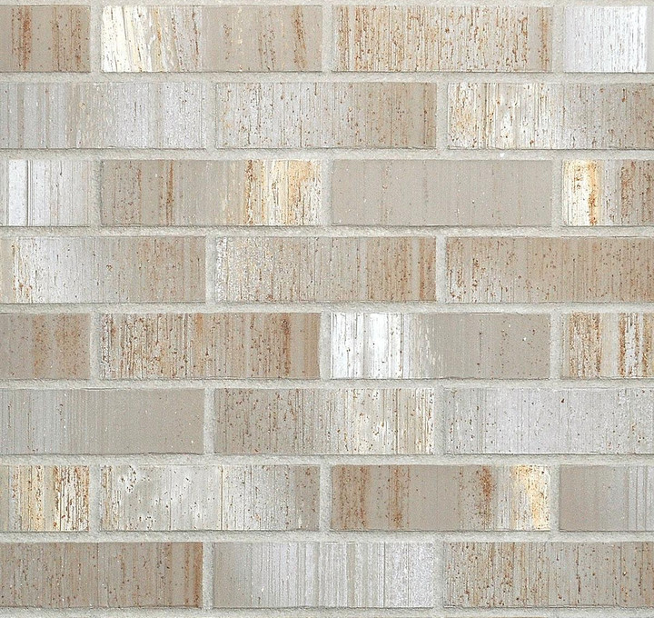A clinker tile produced in NF format, distinguished by its unusual colouring featuring intermingling yellows, off-white, and light greys in a cool tone, with irregular colour variations.