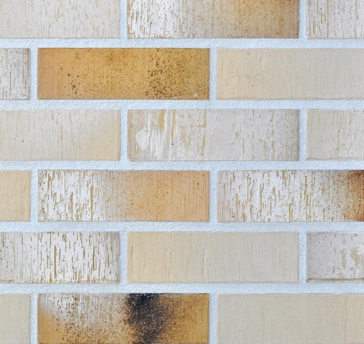 An exceptional clinker tile from the BORDEAUX collection in sand-white, featuring irregular edges and a surface texture reminiscent of natural stone.