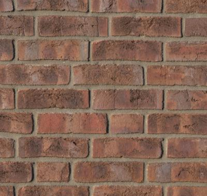 The hand-formed Moorbrand brown shaded facing brick features a vibrant red with brown and black accents. Combined with split edges and a raw face, it creates an authentic effect of a natural old wall.