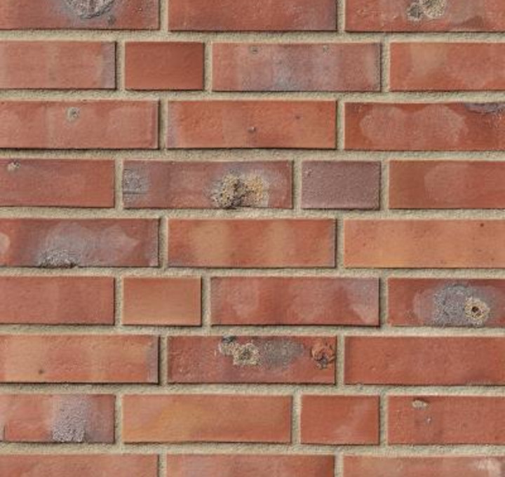 Its color palette is dominated by muted red, with streaks of dusty pink and heather violet in irregular, blotchy shapes. Thanks to its resistance to adverse weather conditions, it is ideal for façades as well as for building fences.