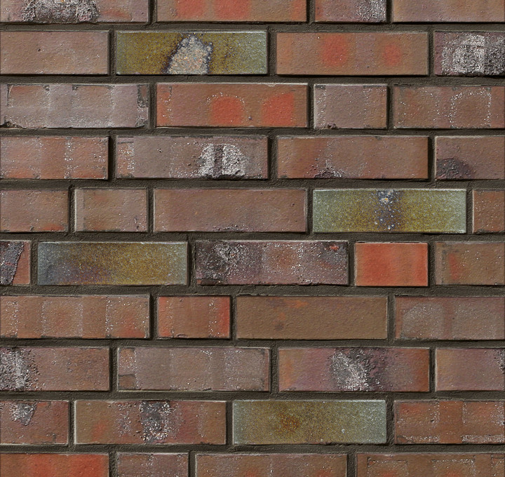 High-quality clinker tile – Röben PREMIUM. Its color palette is dominated by muted brown, with streaks of dusty red and heather violet in irregular, blotchy shapes.