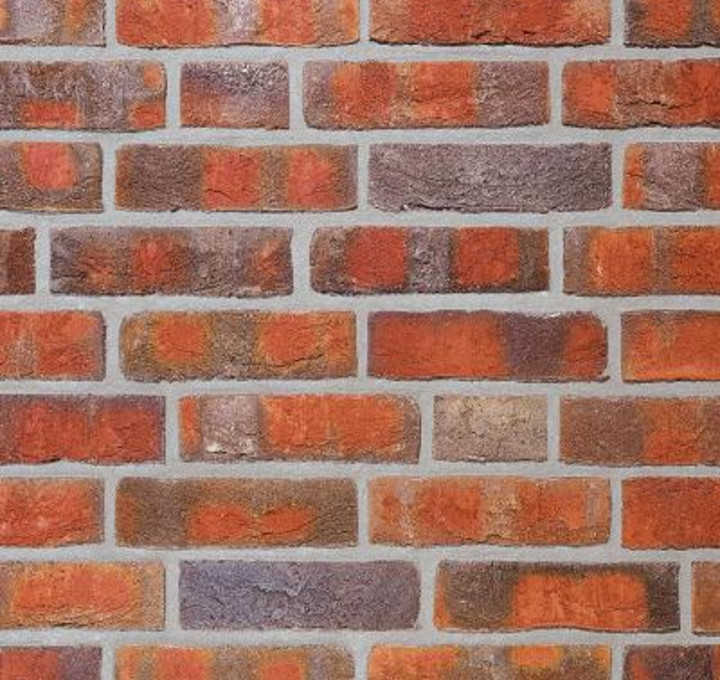 Top quality hand-molded facing tile (RöbenPREMIUM) with a red base and accents of other colors.